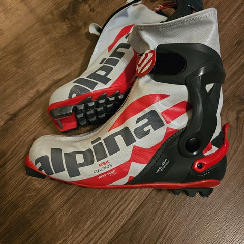 Alpina RSK racing skisko til skøyteski eller langrenn. Stiff boot flex. Heel grip system. Str 37-38. Ny pris var litt over 2000,-
