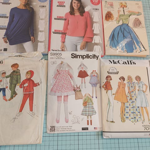 Har du en syspire i deg? Gamle mønster til å sy klær selges. 17 forskjellige pluss litt smårusk. Mest til barn, men også noe til jente/ dame. Se bilder. Garanterer IKKE at alt er helt komplett, men det meste skal være det. Fra 1960 - 70 tallet. Mamma sydde 🤗❤️.