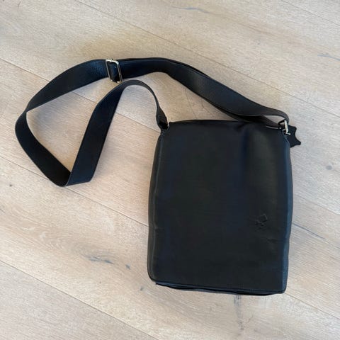 Lukkes med trykknapp, en stor innerlomme med glidelås. Praktisk unisex veske.