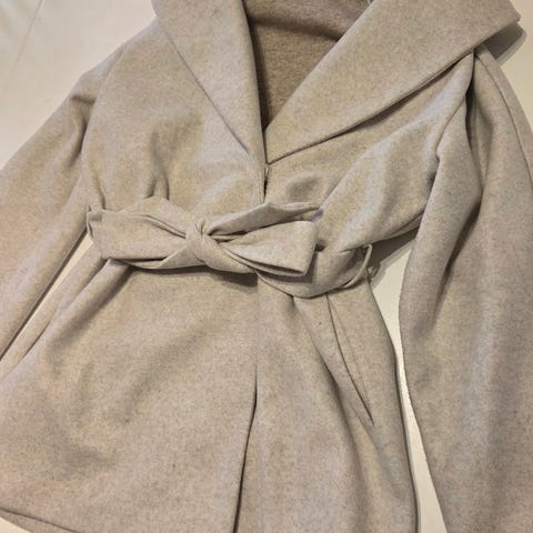 Kort kåpe selges etter 1 bruk. Vil si den er litt oversized, så passer en S også! superfin og i en kremhvit farge. Kjøpt for 599,-