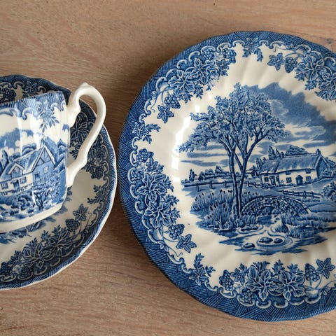 6 nydelige små asjetter i lilla/ rosa farge fra John Miltons serie Cottage De er i veldig god stand., uten krakelering . Ø 11,5