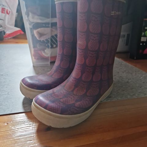 Selger et par svært lite brukte gummistøvler i str 33. Støvlene er lite brukt da vi ikke fikk plass til fotsenger (spesialsåler) i dem.