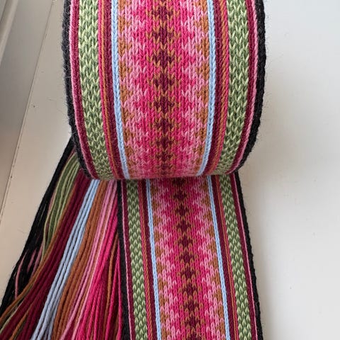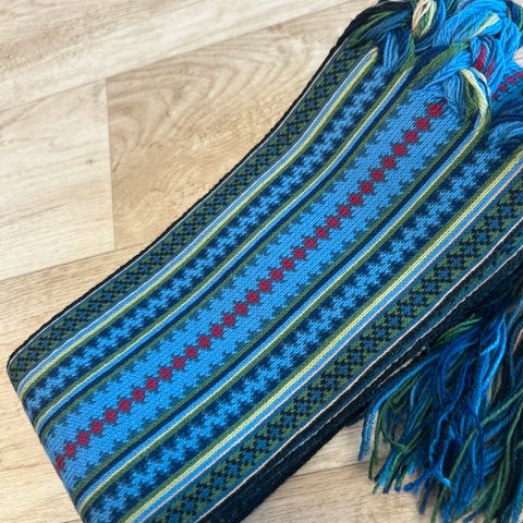 Belte til øst Telemark bunad og hårvippe. Belte 1,6 m pluss frynser,ca 7 cm bredt.Vevd med 100% ull garn fra Rauma. 5000kr for belte ,kan sendes mot at kjøper betaler porto