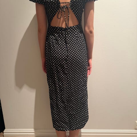 Nydelig kjole fra Bandero i størrelse 36. Kjolen har draperinger foran og «skinn»-detaljer på skuldrene. Passer til enhver anledning.