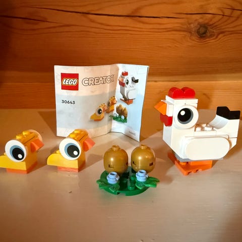 Easter Chick Egg (30579) fra Lego Holiday & Event. To eksemplarer av settet. Begge er komplette, men det følger ikke med instruksjoner.