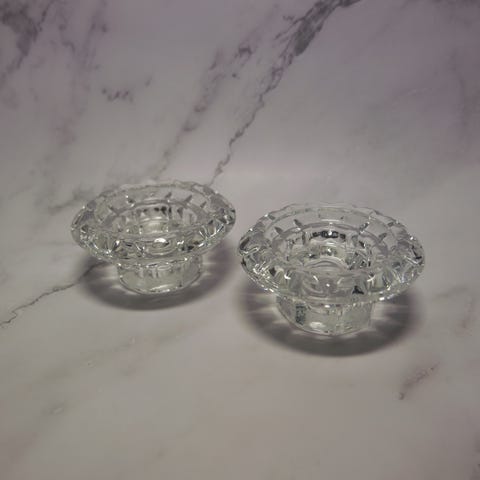 Fransk Luminarc vintage lysestaker med blå stett