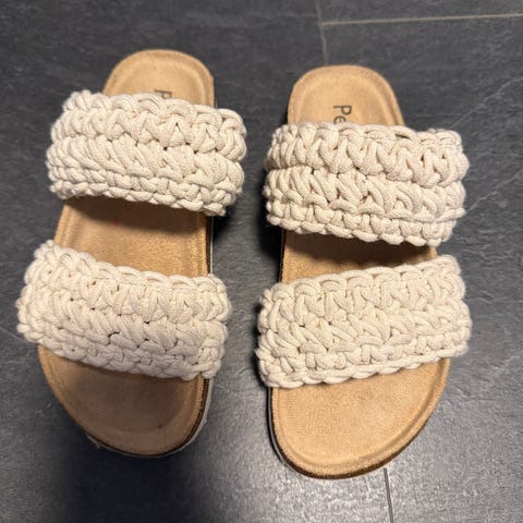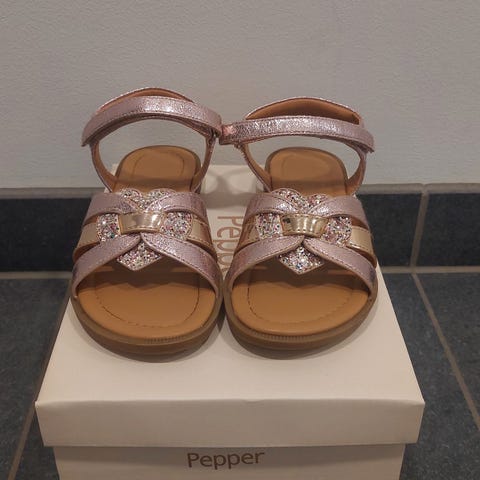 Rosa og sølv med glitter og skimmer. Godt brukt som er mest synlig på innsiden.