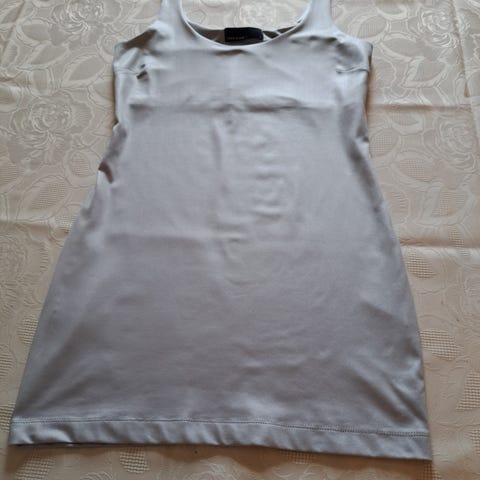 Som ny, enkel minimalistisk stilig finstrikket kjole fra H&M, str M, viskose og silke. Brukt til en anledning i ca 3 timer. Lengde fra skulderen og ned er 91-92 cm.