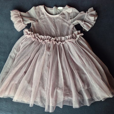 Kjole str.110 anmerkning foran.hull!! se bilde. Kan syes. Kjempefin kjole. Pent brukt, uheldig med hull.