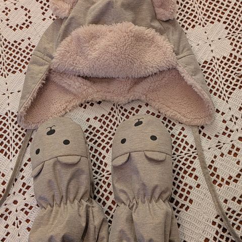 Hånd gamasjer fra Sutle str 1 år. Kjekke ved lek og morro med vann så holder genseren seg tørr.