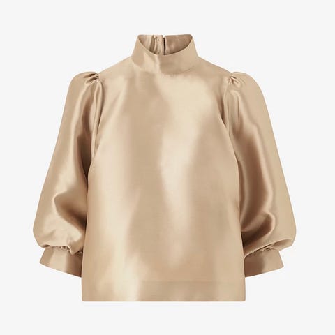 The luxurious hand of satin charmeuse affords a lustrous sheen to this elegant blouse, which is defined by a one-shoulder silhouette and blouson sleeves. LRL-engraved buttons afford a signature Lauren Ralph Lauren finish.