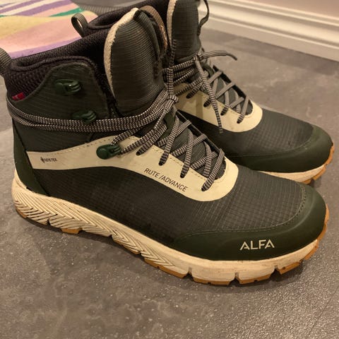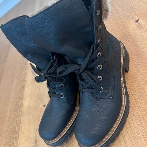 Skade i skinnet på baksiden på den ene skoen. Se bilde.