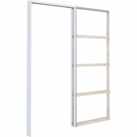 Selger pocketkarm til innfelt skyvedør. Karm er malt, hvit bomull S0502-Y 82,6x204 cm, med totalmål 170x210 cm.