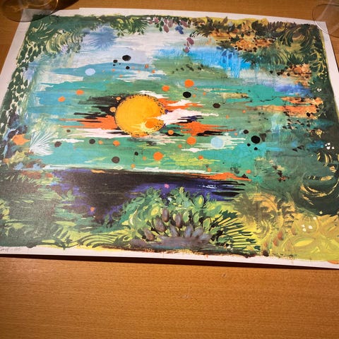 Tungt glass relieff med ekte gull maling og metall bakplate, den veier ca. 3,250 kg
