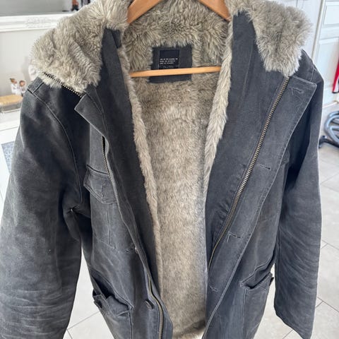 Selger en nesten ny skinnjakke/duffycoat i kalveskinn fra rockdenim. Kjøpte denne for to år siden og framstår som ny, brukt i kaldt vær i ca fem timer.