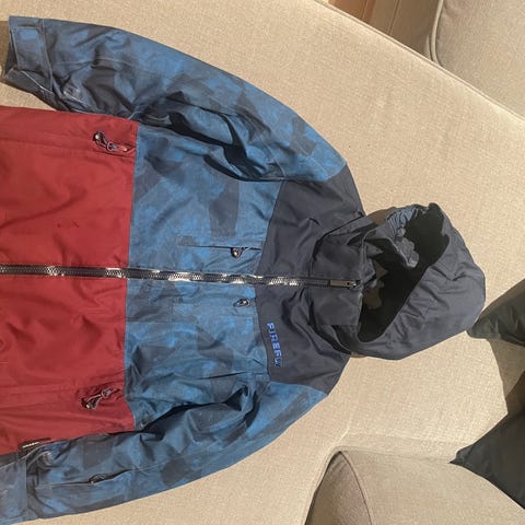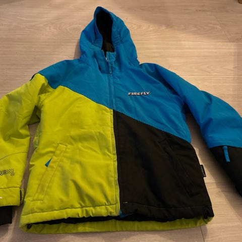 Knapt brukt varm vinterjakke, vindtett, vannavstøtende og med snølås. Str 116 (6 år). Avtagbar hette.