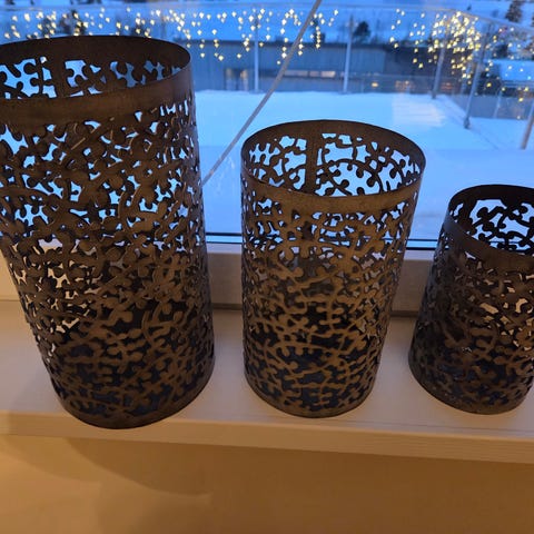 * Sett med 3 telyseholdere (sølv med perfler)