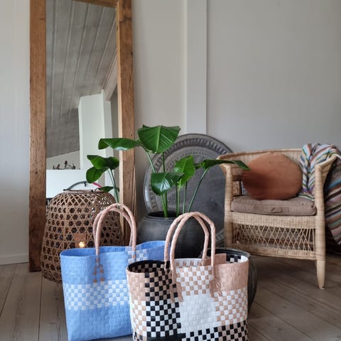 De to minste har «skinn» pvc håndtak og ekstra lange skulderstropper.