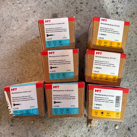 Selvborende Skurer til stål. Har 20 pakker. Selges kr 80 pr pakke. Kan sendes.