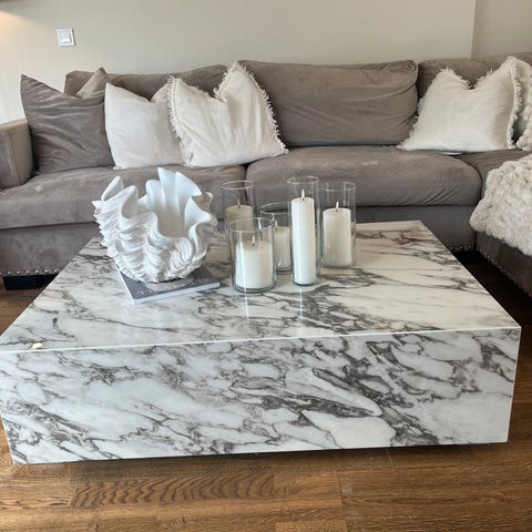 Nydelig sidebord fra danske Kristina Dam. Ben av heltre og platetopp i lys marmor. Ben er pusset ned og oljet i en mørkere farge.