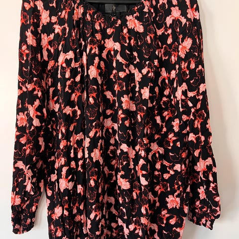 Sort bluse med hvitt og rødt småblomstrete mønster størrelse small. Fin til jul! Ny og ubrukt med lappen på fra Blendshe 🛍️