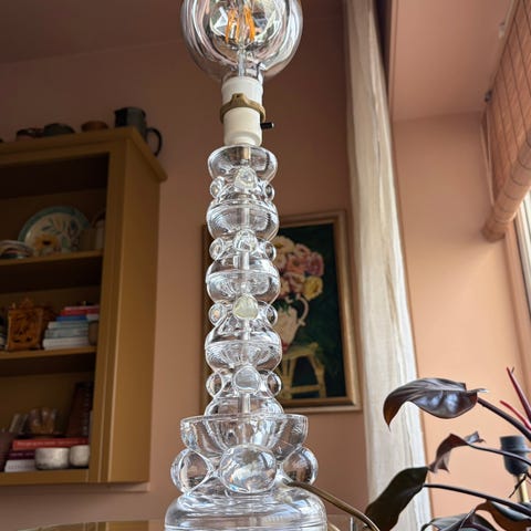 Retro Muranolampe med 32 poliedriglass ( blanke) som vi vurderer å selge. Lampen er sannsynligvis fra 60-70-tallet. Den er ca 33 cm i diameter.