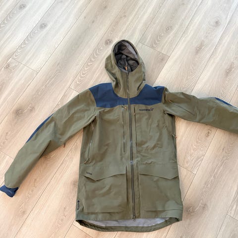 Pent brukt Stormbergjakke , snøring nede og i hette, borrelås til å regulere hette, glidelås under armene