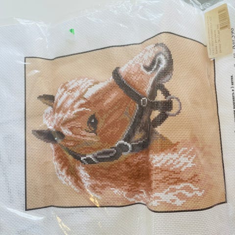 Påbegynt broderi ( løper). selges. Ganske nøyaktig halvferdig. Pent håndarbeid. Se vrangen på bilde 2. Str. 46 • 108 cm. Ull-stoff. Mønster og broderi-garn følger med.