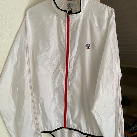 Pent brukt jakke som passer til flere sesonger. Lys og fin som gjør det lett å bli sett i trafikken. Sitter relativt tett på kropp og har snitt som gjør det passelig for landeveissykling. Kommer med tre lommer bak for oppbevaring.