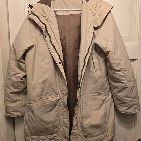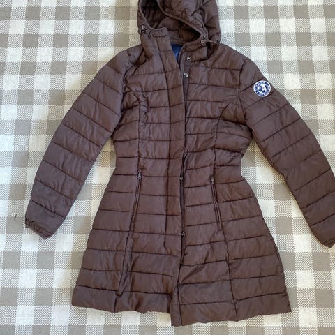 Som ny, brukt et par ganger da den ble for stor. Nydelig jakke. Vannavstøtende. Se beskrivelse. Mørk brun flott farge. Ny pris 1700. Har festet hempa på ene siden da den var løs. Lov å komme med rimelige bud.
