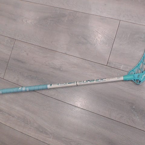 Godt brukt innebandykølle med ekstra blad og bag. Stroppen på baggen har løsnet, men går nok an å få festet på igjen:)