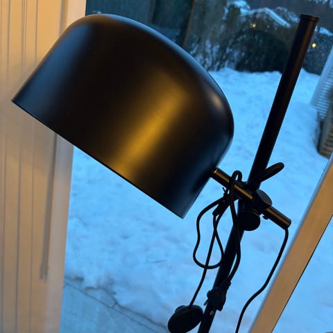 Lampene er testet, men ikke tatt i bruk. De kostet opprinnelig 1000,- før de på slutten, før de gikk ut av sortiment, ble solgt rabattert for 600,-. Selges nå til ny pris 300,- pr stk.. Den ene sorte veltet og har fått en bulk i skjermen. Denne selges derfor til 200,-.