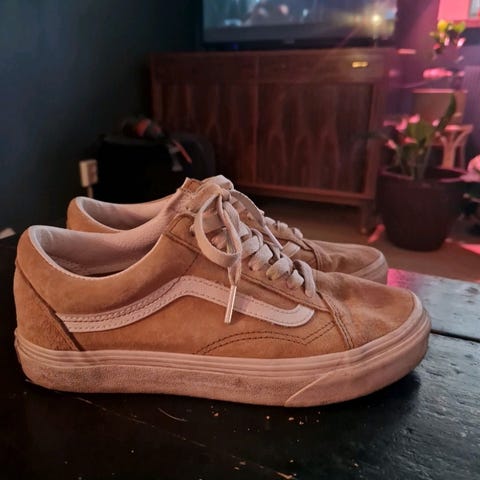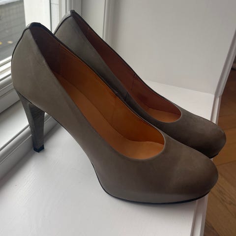 Selger kule høye pumps i fersken farge str 38. Lite brukt og i orden. Ene hælen har blitt reparert hos skomaker, da jeg hadde trødd nedi ei rist. Litt av skinnet ble skadet, men reparert og nesten usynlig nå. Se bilde.