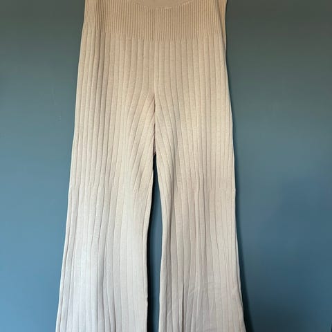 Veldig myk bukse med vide ben fra ASOS. Størrelse medium, ribbet, beige/sand farget.