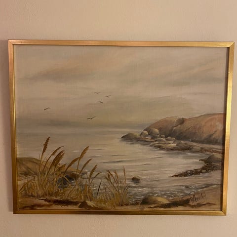 Vakkert oljemaleri fra 1948_ kystlandskap