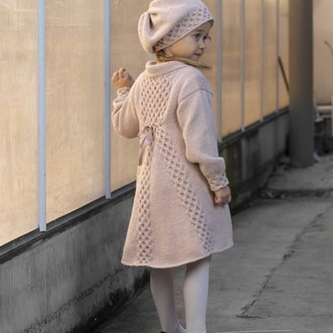 Myk kåpe med en fluffy overflate, avrundet krage og A-formet silhuett.