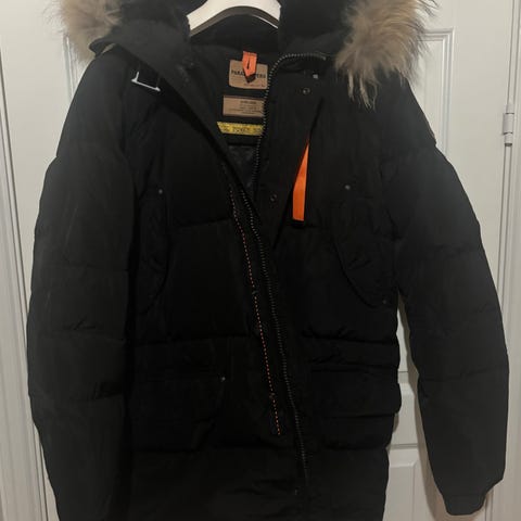 Vinterjakken er svart og vattert, med pelshette. Den har flere lommer foran, både med klaff og glidelås, samt justeringsmuligheter ved ermer og hette. Jakken lukkes med glidelås og knappelukking i front.
