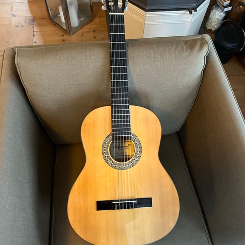 Selges med godt polstret gigbag. Da gitaren kom til meg i posten ble den skadet. Den fikk sprekk i kropp og stol var løs. Ble fikset hos proff gitarmaker for ca 5000 kr. Den har fremdeles synlig sprekk i kropp men er godt limt. All dokumentasjon på skade og reperasjon kan fremlegges. Vurderes solgt da d ikke er helt riktig gitar for meg. Topp gitar som er lite spilt på. Som ny sett vekk ifra skadene den fikk. Sendes ikke men kan mulig leveres på østlandet. Nypris finner du vedlagt på bilder (ca 19600, totalt). Gitar koster ca 15.500. Selges til under halv pris. Gitar reparert av gitarmaker Øyvind Fjell. Han mente denne gitaren var veldig godt bygget. Zicorote treværk b.l.a