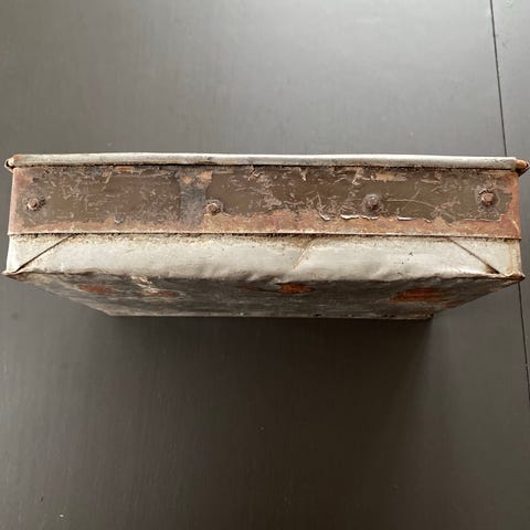 Mål: 16,5 x 13 x 4 cm. Litt ødelagt på den ene siden.