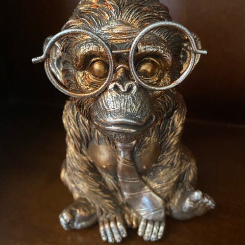 Håndskårede vintage ape figurer i tre selges kr 325,- (Ikke se - ikke snakke - ikke høre)