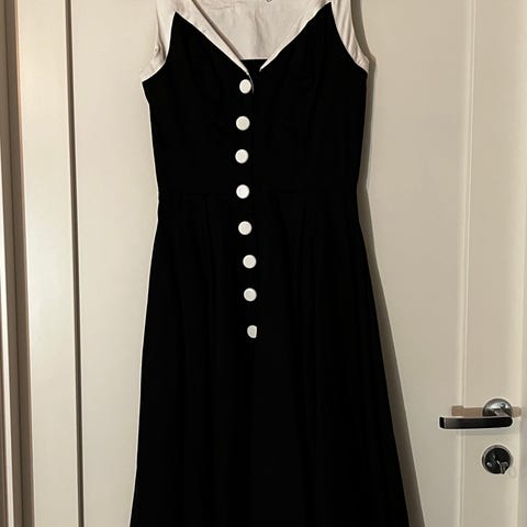 Lekker , ekte 50-talls-kjole. Hjemmesydd. Solid og fint rips-stoff. . Glidelås i ryggen. Folde-skjørt. Ermeløs .