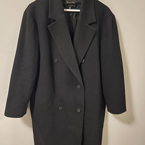penjakke ensfarget sort vårklær sommerklær høstklær sommer høst selskap fest selskapsklær festklær kontorklær frakk kontorantrekk sommerjakke høstjakke vårtøy tidløs knapper tettsittende M løst sittende S sid lang krave langermet