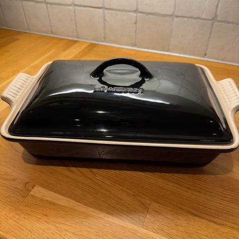 Ubrukt serveringsfat fra Le Creuset selges i original emballasje.