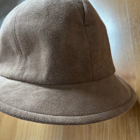 Lite brukt utvendig stoff ser ut som semsket, foret inni. Materiale 60%moscryl 40%polyester