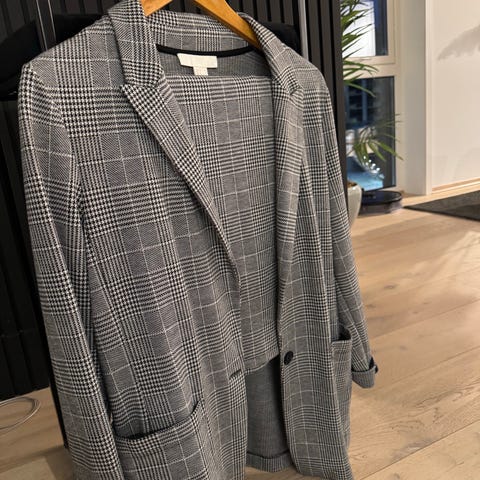 H&M sekvensblazer for damer. Svart, grå og sølv. Størrelse S, oversized.