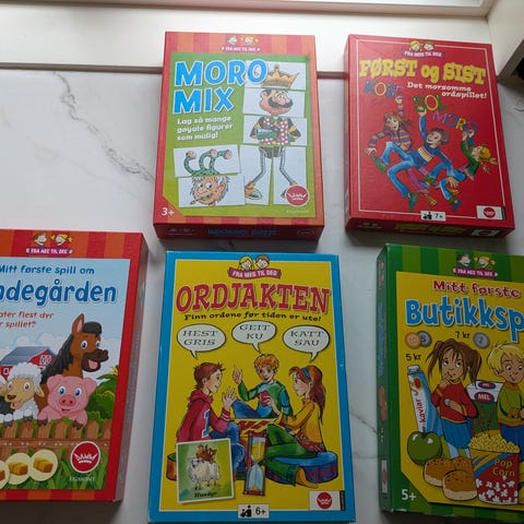 Diverse spill for barn selges samlet til 100kr. Pent brukt.