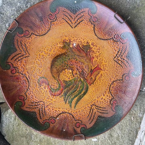Svært keramikk fat , med jern oppheng , solid , pen stand , sender gjerne mot porto
