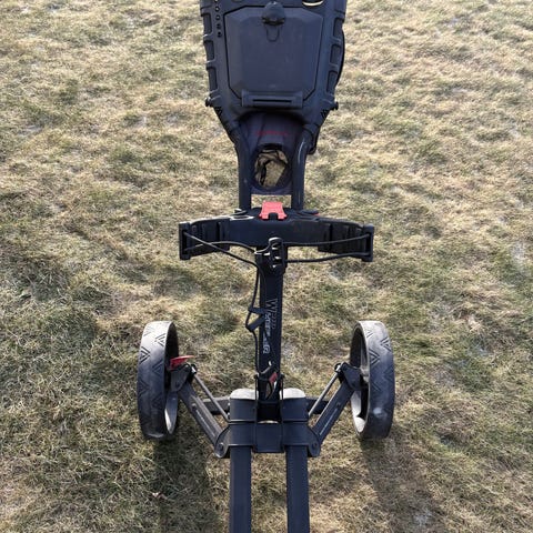 Dynatour elektrisk golftralle, Wilson Staff jernkøller 5-9,G og P, Odyssey Putter, PGA golfbag og diverse utstyr på bilder selges samlet. Batteriet på golftralle er defekt.