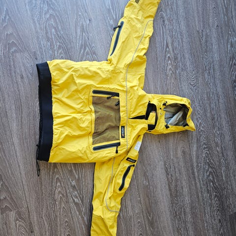 Lite brukt padlerjakke i størrelse M selges. Vanntett og vindtett. Krave, linning og mansjetter i behagelig og mykt gummiert materiale. Krave og linning kan justeres med med borrelås. Mansjetter slutter tett om håndleddet.