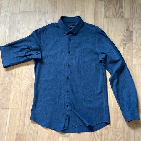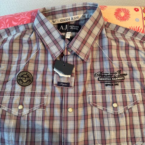 Flott Armani skjorte, i blå kamuflasje mønster. Slimfit. 100% bomull.